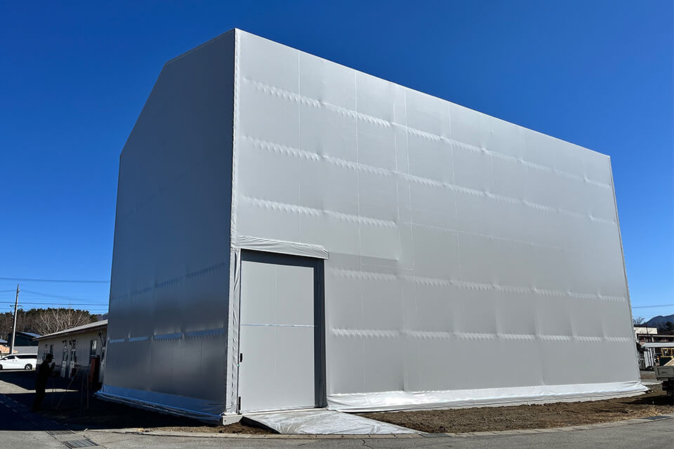 テント倉庫(天幕倉庫) 施工目的 新築 お客様 陸上自衛隊北富士駐屯地 使用用途 倉庫 竣工年月 2025/2 施工期間 1.5ヶ月 機能 防炎シート、積雪対応 仕様 不燃物倉庫 寸法 H9.85m×W10.9m×L17.82m 所在地 山梨県 商品ページへ お問い合わせ GALLERY
