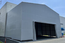 大型テント倉庫、可燃物置き場、延焼ライン接触仕様
